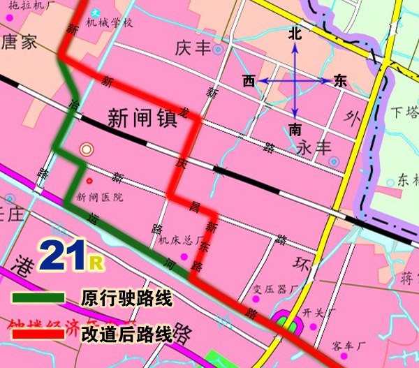1、21路:由薛家公交中心站始發(fā),按原行駛路線行駛至新冶路拖拉機廠站后,調(diào)整行駛新龍路、新慶路、新昌路、新東路至運河路后按原行駛路線至火車站公交中心站往返。撤消原新冶路(新龍路路口至新昌路路口)、新昌路(新冶路路口至新府路路口)、新府路、運河路(新府路路口至新東路路口)行駛路段。同步撤消原武進化肥廠、新閘鎮(zhèn)政府、新閘、機床廠上下行??空荆{(diào)整行駛路段增設常州荷園、新康花苑、新閘民營工業(yè)園、新昌花苑上下行??空?。