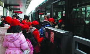 在BRT2號(hào)線瞿秋白紀(jì)念館站臺(tái)上,趁著沒(méi)有車停站的工作間隙,小記者們把站務(wù)員段麗麗團(tuán)團(tuán)圍住了。