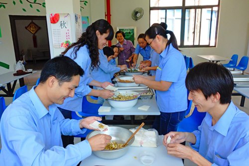 上午,省勞模張婭瑛、市勞模何萍與“全國巾幗文明崗”B12班組、省“青年文明號”11路班組10多名駕駛員來到敬老院餐廳為老人們包餛飩。敬老院有兩位老人沒有自理能力,她們又主動接下了給老人喂餛飩的任務……