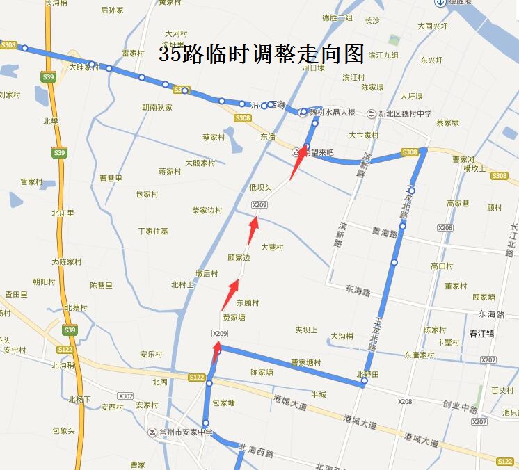 35路:由常州北站始發(fā),按原線行駛至魏安路創(chuàng)業(yè)路路口后,恢復(fù)魏安路(創(chuàng)業(yè)路—S338)行駛路線。撤銷創(chuàng)業(yè)路(魏安路—玉龍路)、玉龍路(創(chuàng)業(yè)路—S338)、S338(玉龍路—魏安路)臨時繞行路段,同步撤銷“創(chuàng)業(yè)路魏安路、安百橋北、興塘西路、德豐企業(yè)、玉龍路興豐路”雙向臨時停靠站及恢復(fù)魏安路(創(chuàng)業(yè)路—S338)路段相應(yīng)公交??空军c(diǎn)。