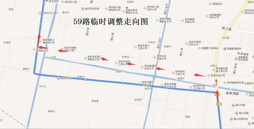 59路:由火車站公交中心站始發(fā),按原線行駛至S239翠屏湖路路口后,調(diào)整行駛S239、微山湖路至浦南大街路口后恢復(fù)原線路行駛。臨時(shí)撤銷翠屏湖路(S239-浦南大街)、浦南大街(翠屏湖路-微山湖路)行駛路段。同步撤銷“西夏墅、前薛村、后葉村、姚家村、東珠墅、石橋頭”雙向停靠站,調(diào)整行駛路段新增“微山湖路岳山路、微山湖路浦南大街”雙向、“微山湖路S239”西行及“景西華庭”南行臨時(shí)??空?。