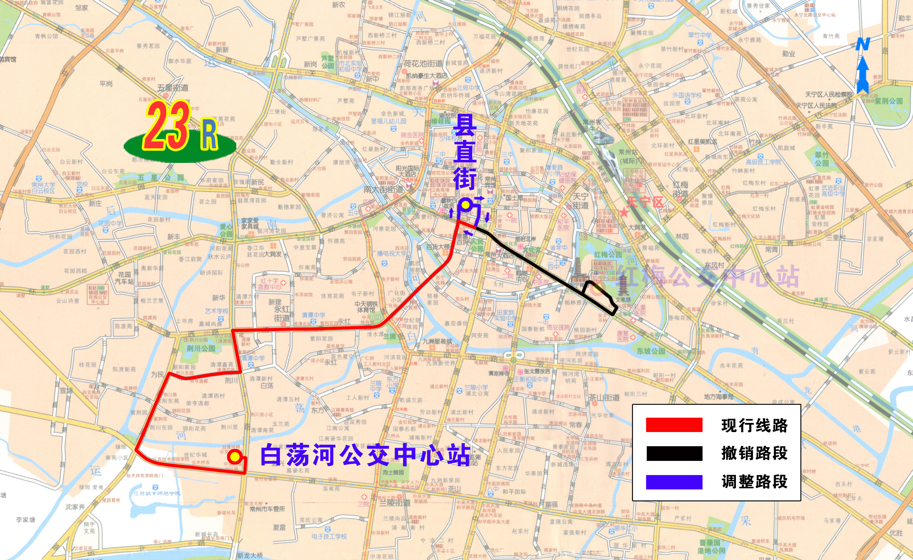 23路:由白蕩河公交中心站始發(fā),按原線路行駛至南大街延陵路路口后,調(diào)整繞行北大街、局前街、小河沿、延陵路至南大街路口后按原線路返回。撤銷延陵路(南大街—文筆路)、文筆路(延陵路—武青路)、武青路(文筆路—洗米弄)、洗米弄(武青路—延陵路)行駛路段,同步撤銷“小營(yíng)前、文化宮、天寧寺、紅梅公交中心站”雙向及“新世紀(jì)商城”東行??空?,調(diào)整行駛路段增設(shè)“縣直街”東行、“小河沿”南行臨時(shí)??空尽?/span>