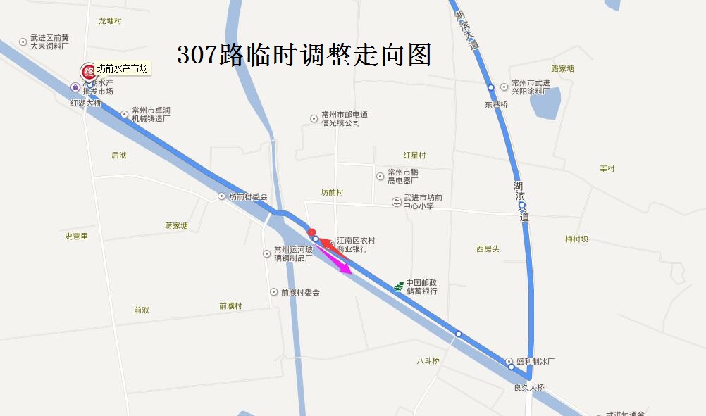 因前黃鎮(zhèn)坊前村市場橋全封閉施工需實行交通管制,受此影響,常州公交將于2017年3月8日起對涉及的307、519d路公交作臨時調(diào)整,具體調(diào)整方案如下: