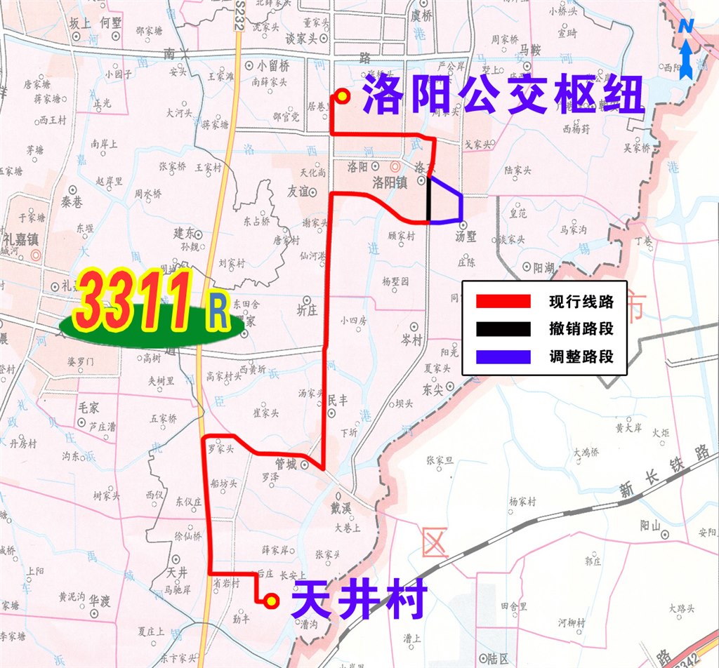 3311路:由洛陽(yáng)公交樞紐始發(fā),經(jīng)戴洛路、新科路、珠光街、東都路、陽(yáng)光路、永安里路、戴洛路、荷花路、虎臣路、S232、吳鐵橋路、天井路至天井村按原線路往返。沿途停靠洛陽(yáng)公交樞紐、傅家頭橋、洛陽(yáng)工商分局、洛陽(yáng)國(guó)稅局、洛陽(yáng)中行、珠光街東陳路、洛東村委、陽(yáng)光明珠苑、洛陽(yáng)醫(yī)院南、湯墅村、永安里路洛東路、洛陽(yáng)初中、洛陽(yáng)小學(xué)、圻莊、洛陽(yáng)躍進(jìn)橋、東序、小四房、洛陽(yáng)創(chuàng)新橋、民豐、戴溪東、戴溪農(nóng)行、戴溪公交站、羅澤、羅澤西、虎臣東、虎臣、馬馳、洛陽(yáng)吳鐵橋、勤豐、天井、天井村。