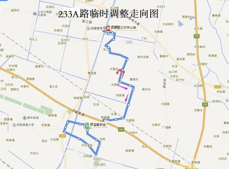 233A路:由羅溪首末站始發(fā),按原線行駛至 “東南村委”站后返回。臨時(shí)撤銷“ 王家、高巷里、西夏墅東站、西夏墅醫(yī)院、西夏墅公交中心站”雙向??空尽?br>