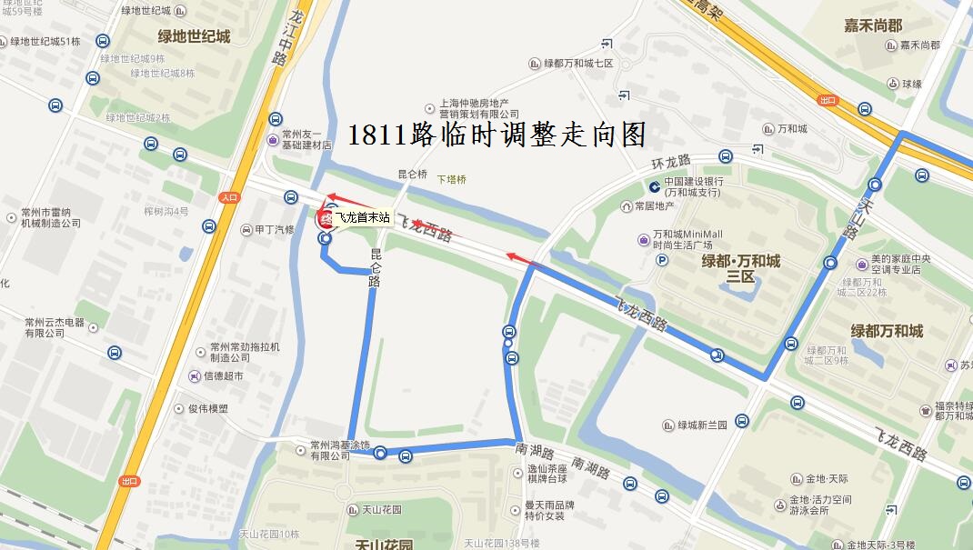 1111路:由飛龍首末站始發(fā),按原線路行駛至飛龍路昆侖路路口后,調(diào)整行駛飛龍路至環(huán)龍路路口后恢復(fù)原線路行駛;臨時撤銷昆侖路(飛龍路—南湖路)、南湖路(昆侖路—環(huán)龍路)、環(huán)龍路(南湖路—飛龍路)行駛路段,同步撤銷“天山花園、飛龍實驗學(xué)校”雙向??空尽?/span>
