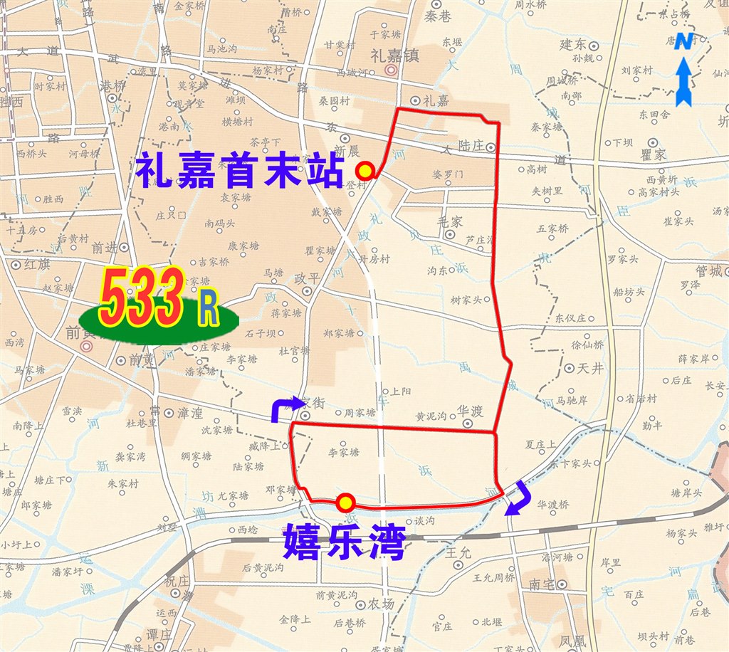533路: 由禮嘉首末站始發(fā),經(jīng)禮政路、禮新路、禮毛路、南環(huán)線至嬉樂灣后返回。沿途??垦赝就?慷Y政路武進(jìn)大道、禮嘉商貿(mào)城、禮嘉醫(yī)院、禮嘉中學(xué)、陸莊村委、陸莊、陽沿橋、毛家橋、毛家村、毛家村南、華渡村委、華渡橋、薰衣草莊園、談溝橋等站。