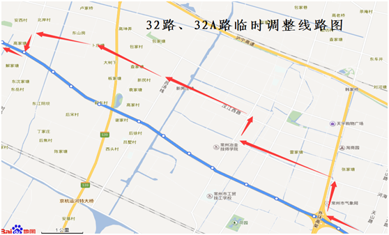 32路(32A路):由火車站公交中心站始發(fā),按原行駛路線行駛至龍城大道龍江路路口后,臨時(shí)調(diào)整行駛龍江路、河海西路、薛冶路、漢江西路、葉湯路,至葉湯路龍城大道路口后,恢復(fù)原行駛路線。臨時(shí)撤消龍城大道(龍江路—葉湯路)行駛路段,同步撤消“龍江立交西、龍城大道玉龍路、龍城大道薛冶路、新閘前進(jìn)村、德勝河橋東、龍城大道呂湯路、楊樹村、任葛村委、東沙河頭”雙向??空?。臨時(shí)調(diào)整路段增設(shè)“漢江路葉湯路、漢江路民營三路、漢江路民營二路、漢江路呂墅路、漢江路呂湯路、漢江路勤奮路、薛冶路漢江路、河海路玉龍路、顧家塘橋、河海路順園路、龍江路河海路”雙向??空尽_w移“龍江立交”西行站至龍江路上??浚w移“龍城大道騰龍路”東行站至葉湯路上“葉湯路龍城大道”???。