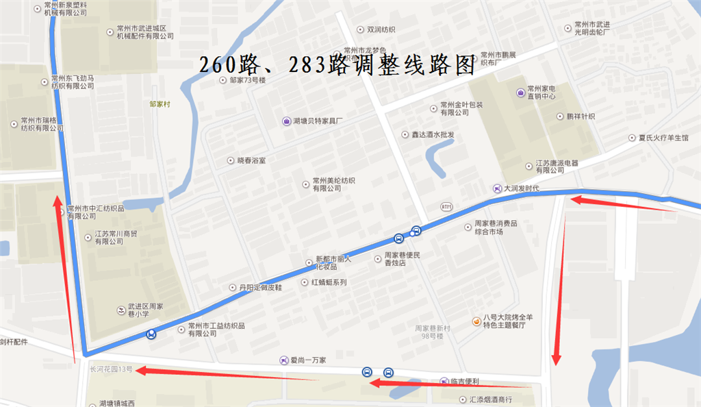 283路:由湖塘樂購始發(fā),按原行駛線路行駛至定安西路長溝路路口后,調(diào)整行駛長溝路、周家巷路,至周家巷路西園路路口后恢復(fù)原行駛路線至西山寺。撤銷定安西路(長溝路—西園路)行駛路段,同步撤銷“周家巷村委”、“周家巷”雙向??空?,調(diào)整行駛路段新增“長溝路定安路”、“長河花園”雙向??空?。