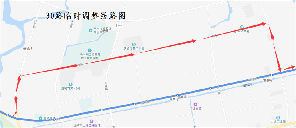 接相關(guān)部門通知,因潞橫路(大明路—興東路)全封閉施工,該路段將實行交通管制。受此影響,常州公交決定于2018年11月11日起對涉及的30路公交作臨時調(diào)整,具體調(diào)整方案如下: