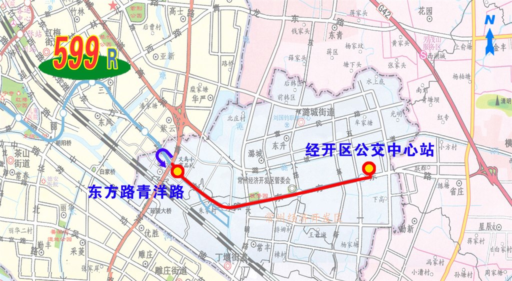 599路:由經(jīng)開(kāi)區(qū)公交中心站始發(fā),經(jīng)東方路,至東方路青洋路路口返回。沿途??繓|方路五一路、東方路常青路、地鐵潞城站東、常州經(jīng)濟(jì)開(kāi)發(fā)區(qū)管委會(huì)、東方路華豐路、白金漢爵、東方路丁塘河西路、東方路灣城路、東方路曙興路、東方路青洋路(東行)等站。